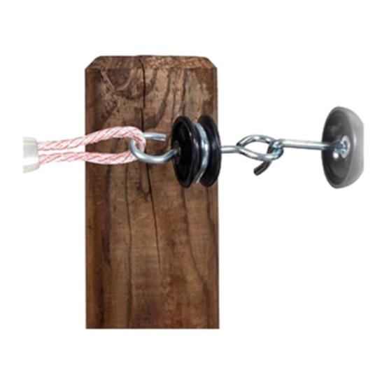 Gemakkelijk een doorgang maken in het raster.<br /><br />Met een poortgreepanker maakt u uw afrastering compleet.<br />Met behulp van deze ankers kunt u makkelijk uw poortgreep vasthaken zonder dat deze los kan schieten.<br /><br />De poortgreepankers hebben 2 ogen, waar de poortgreep aan vast gemaakt kan worden.<br />Door de schroefdraad kunt u het anker eenvoudig vastzetten in een houten paal.<br />De ankers zijn verpakt per 5 stuks en zijn geschikt voor draad en koord.<br /><br />
