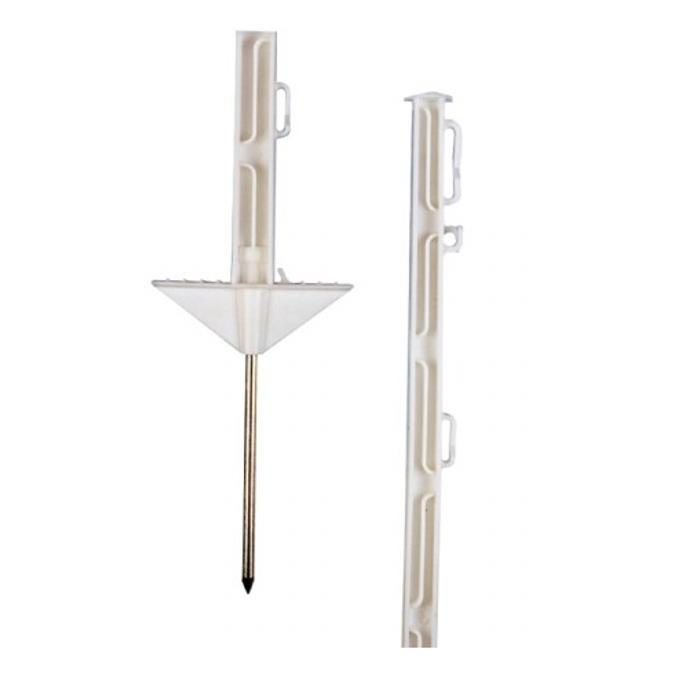 Stevige kunststof vario schrikdraadpaal.<br />Met stevige voet en grondpen, zodat u ze eenvoudig in de grond kunt bevestigen.<br />De vario schrikdraadpalen zijn 105 centimeter lang (exclusief grondpen).<br />Uitgerust met 10 draad/linthouders (40 mm) op verschillende hoogtes.<br />Ideaal voor kalveren, schapen en geiten.